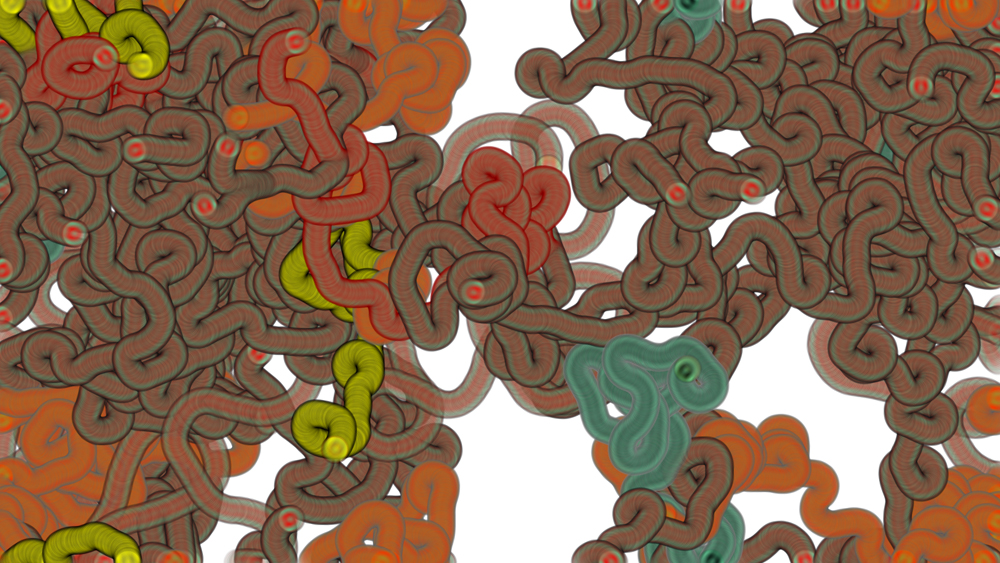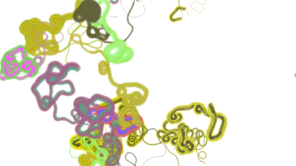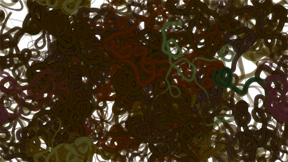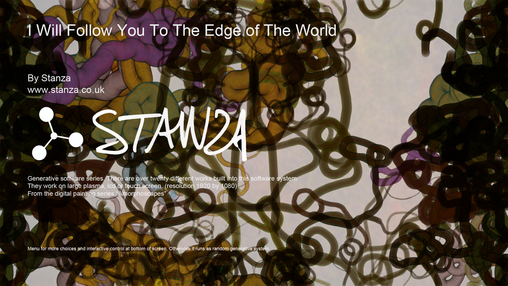 Computer code based generative artwork series by Stanza. There are over 18 artworks in this series, built into the custom made software system that is available for exhibition. This artwork series creates generative paintings based on small scale events that have affects within the system. This custom made software makes millions of generating forms.